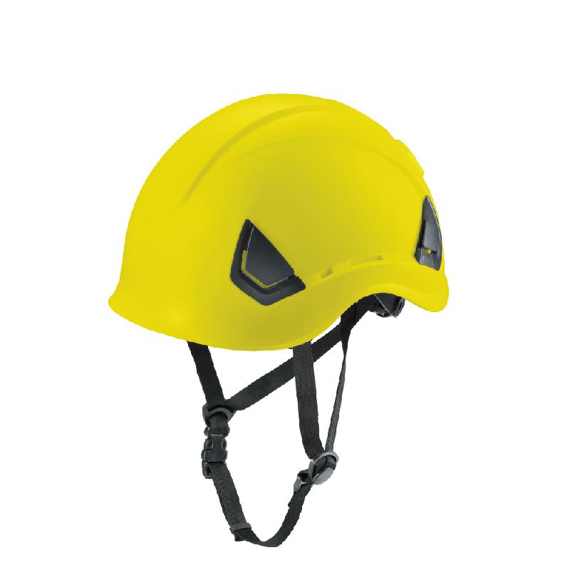 Yellow ABS helmet, 6-point suspension, 4-point chin strap. Adjustable by ratchet. Equipped with ventilation slots on the rear of the helmet. Thermal resistance up to -30°C.